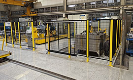 機器人設備圍欄可界定設備專屬通道,防止叉車、人員與 AGV 混行引發剮蹭,將機器人設備安全隔離,防止人員誤入高速作業區域,可搭配安全鎖使用,人員開門進入時機器人自動斷電停機,避免碰撞風險。